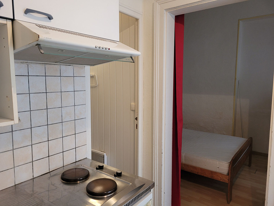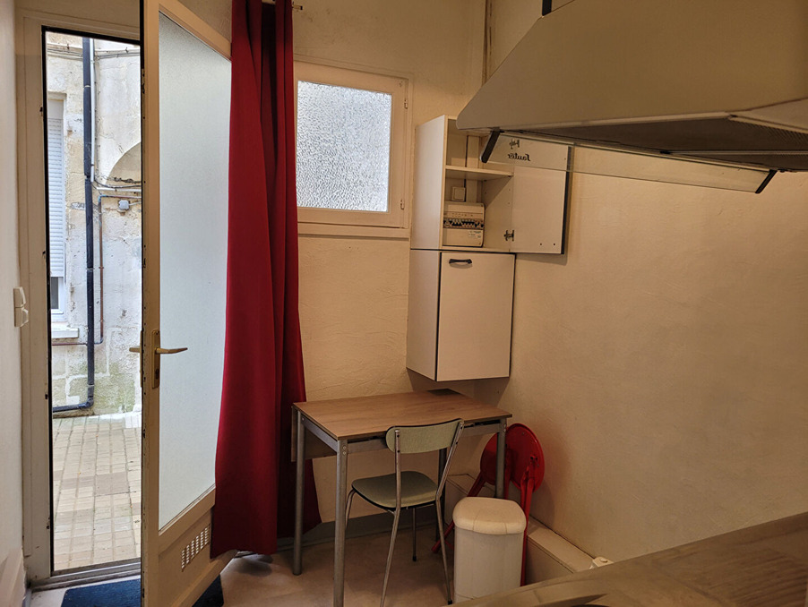 ROCHEFORT en hyper centre ville, au calme, un studio de 19 m² situé en rez-de-chaussée donnant dans une cour, comprenant une entrée sur kitchenette, un espace nuit et une salle d'eau avec WC.Chauffage électrique - Exposé SUD - Les ouvertures sont en simple vitrage bois.