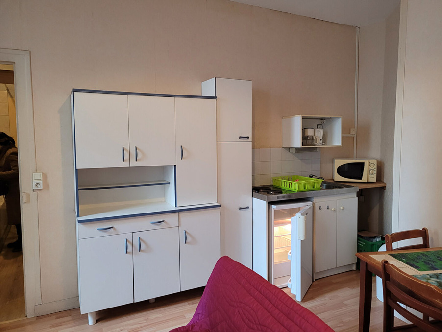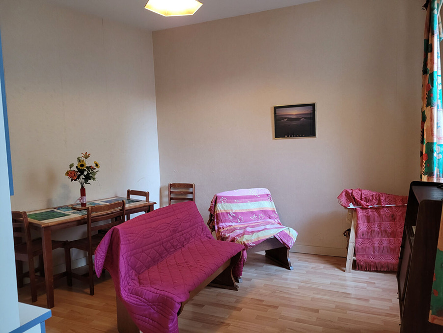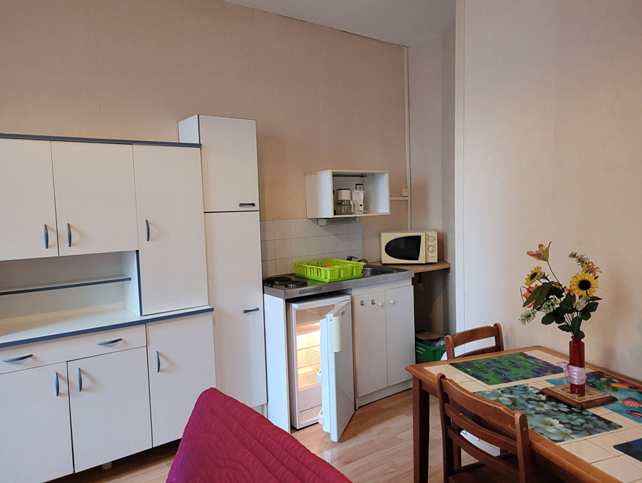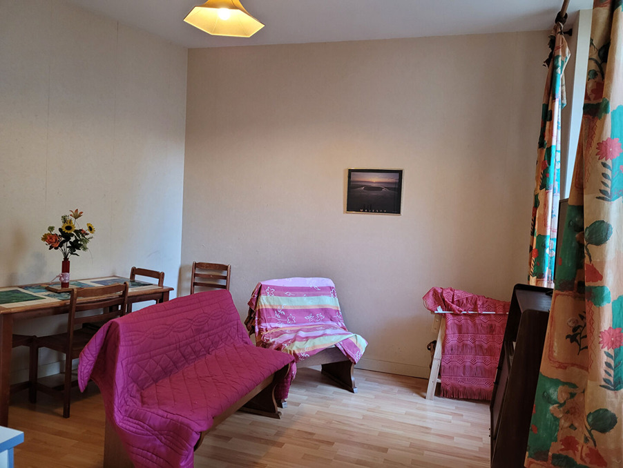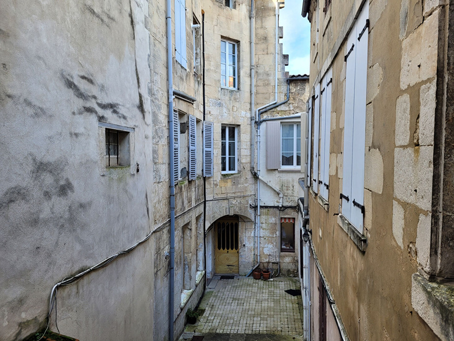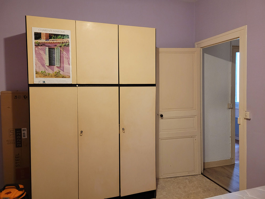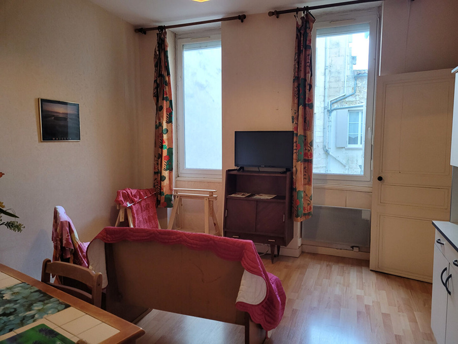 ROCHEFORT en hyper centre ville, au calme, situé au 1er étage un appartement de type 2 et de 34 m² comprenant une entrée, un espace vie avec coin cuisine exposés ouest, une salle de bains avec WC et branchement machine à laver, une chambre avec un puits de jourChauffage électrique et un chai privative situé au rez-de-chaussée