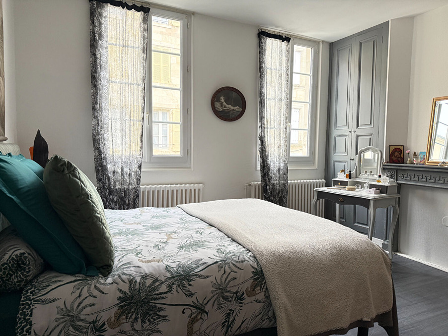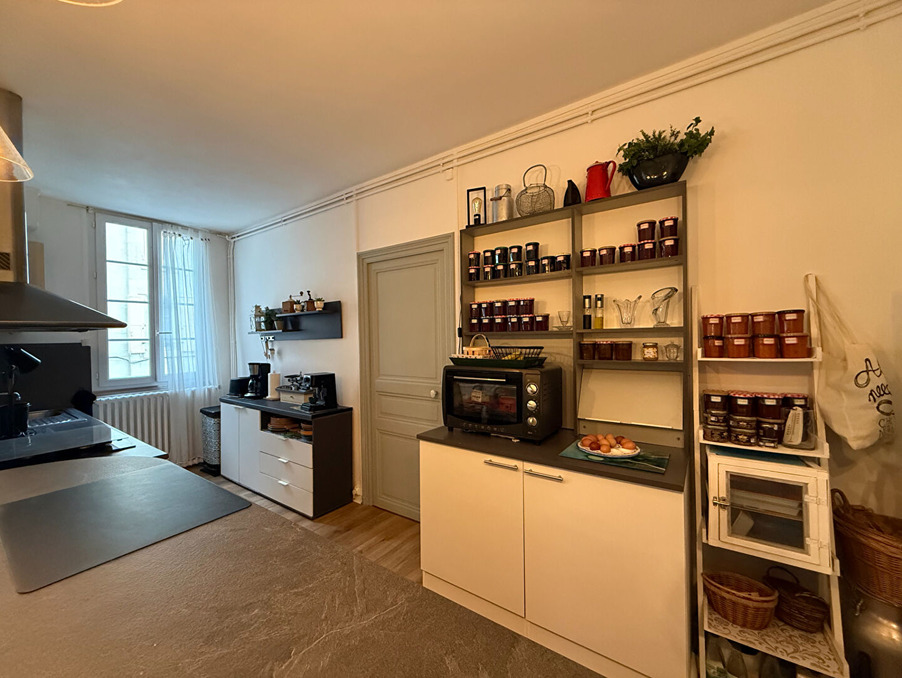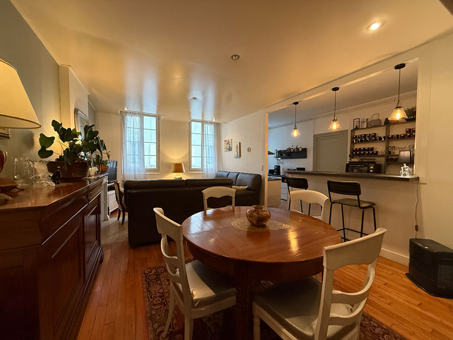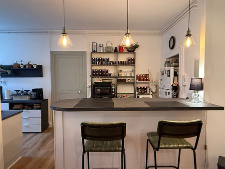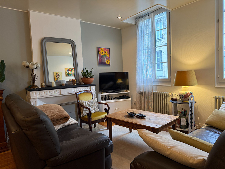ROCHEFORT - Hyper centre ville - Au 1er étage un appartement en excellent état de 77,40 avec cave comprenant : double entrée, séjour/salon avec coin nuit, cuisine aménagée et équipée ouverte, grande chambre lumineuse avec dressing, salle d'eau avec WC. Une cave. Chauffage gaz de ville, menuiseries en double vitrage PVC. Aucun travaux à prévoir. (5.00 % d'honoraires TTC à la charge de l'acquéreur.)Copropriété de 7 lots (Pas de procédure en cours).
