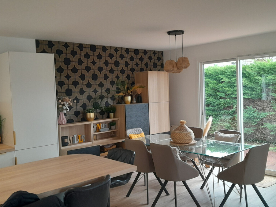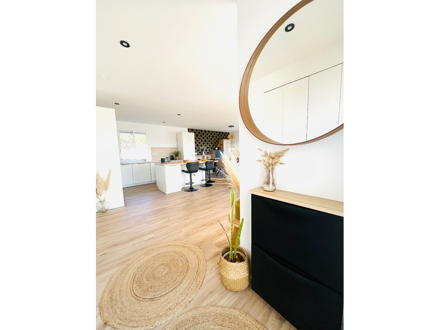 ECHILLAIS - Belle maison de plain-pied rénovée de manière qualitative de 100 m² comprenant : entrée sur pièce de vie de 44 m² , triple exposition, composée d'un salon, séjour et cuisine aménagée et équipée neuve ouverte, avec poêle à granules, lumineuse et fonctionnelle ; cellier, dégagement desservant un WC suspendu avec lave-mains indépendant, une salle d'eau, trois chambres avec placards aménagés dont une avec salle d'eau privative. Garage et auvent. Aucun travaux à envisager. (3.33 % d'honoraires TTC à la charge de l'acquéreur.) Christine BOYET (EI) Agent Commercial - Numéro RSAC : 92350843600014 - LA ROCHELLE.