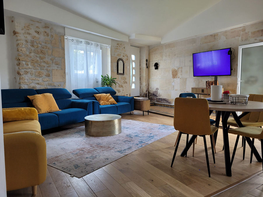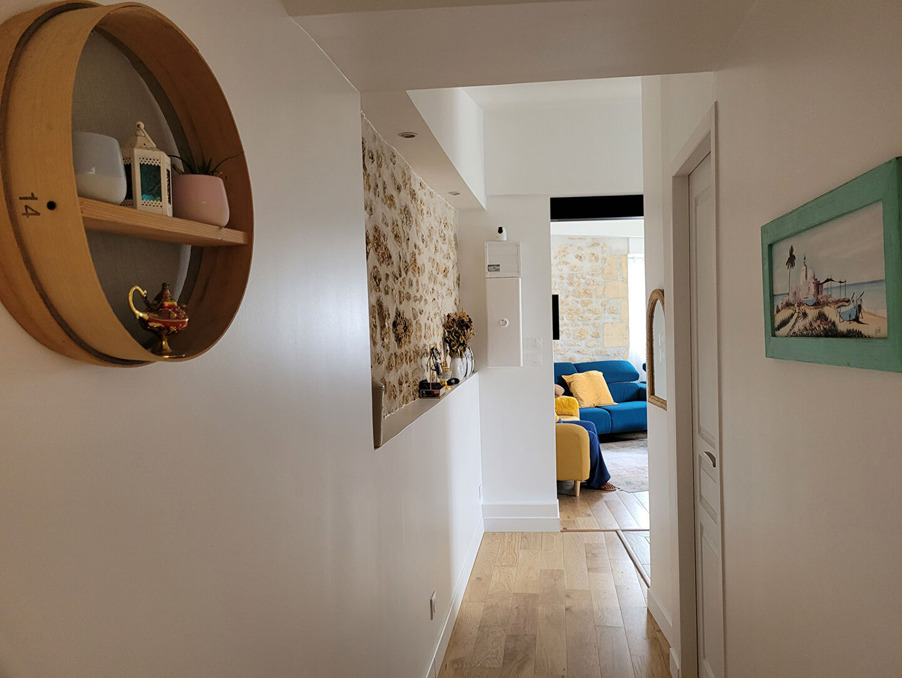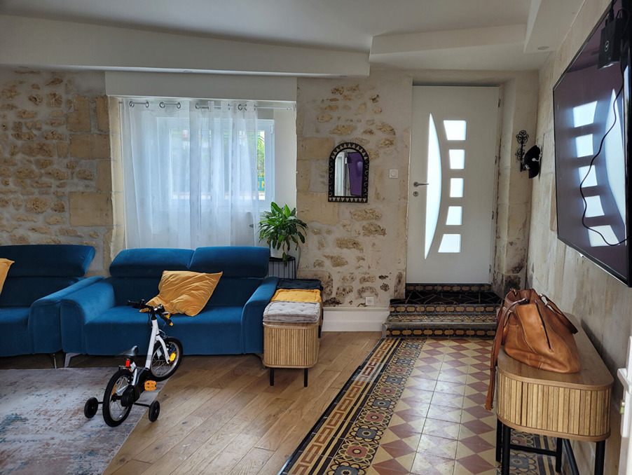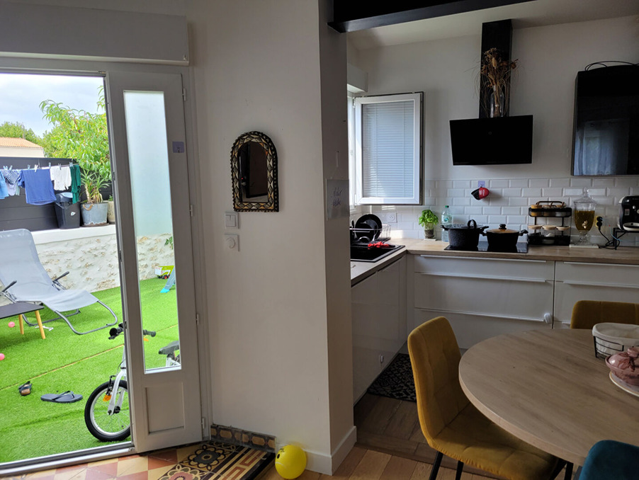 Sur la commune d'ECHILLAIS au sud de ROCHEFORT - Coquette maison ancienne entièrement restaurée et de 85 m² habitables environ comprenant une pièce de vie avec un espace cuisine aménagée et équipée de 36 m², un dégagement dessert 3 chambres et une salle d'eau avec WC. Chambre mansardée d'appoint. Chauffage électrique et climatisation air/air . Exposition SUD/EST - Garage de 17 m² avec système de porte électrique - Terrasse et Jardin - Proche de tous commerces (4.50 % d'honoraires TTC à la charge de l'acquéreur.)