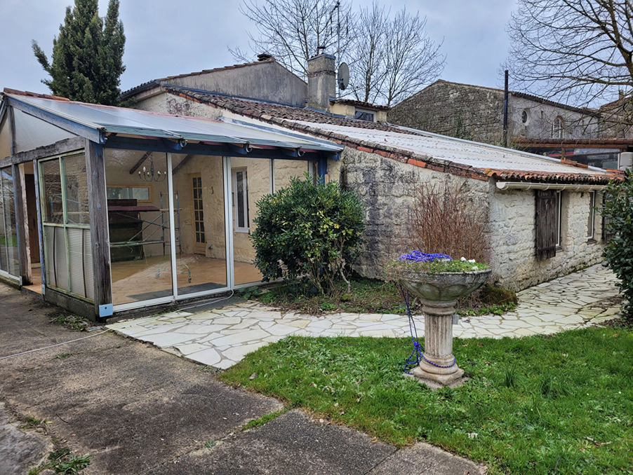 LANDRAIS à 14 min de SURGERES - Maison anciennement corps de ferme de 173 m² habitables comprenant une entrée, une chambre avec placard et salle d'eau privative, buanderie, salon cathédrale de 58 m² avec cheminée à foyer fermé, une cuisine aménagée et équipée, dégagement, 2 chambres, une salle de bains et un WC séparé. Mezzanine de 19 m² disposant d'une salle d'eau avec WC et peut-être aménagée en une 4ème chambre. Chauffage au gaz citerne avec production d'eau chaude - Terrain clos de 2316 m² Puits - Annexe/bureau de 25 m² - Garage de 26 m² (5.00 % d'honoraires TTC à la charge de l'acquéreur.)