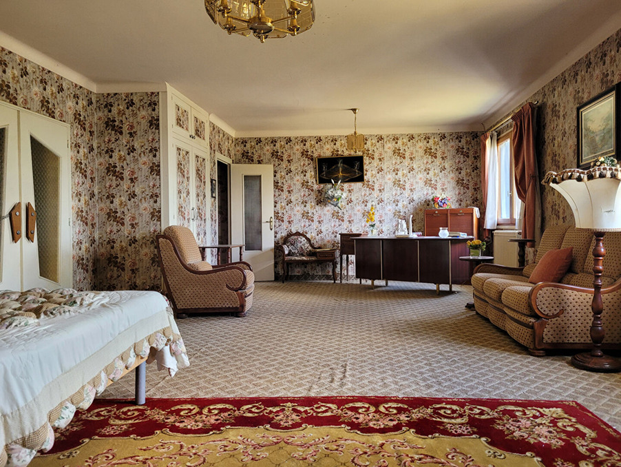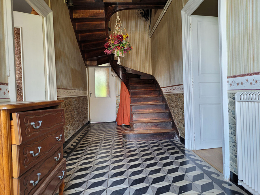 A PONT L'ABBE D'ARNOULT un ensemble immobilier comprenant une maison ancienne de 138 m² et une maison des années 1975 de 107 m², les 2 parties sont attenantes et comprennent au total 2 entrées, une cuisine, arrière cuisine, chaufferie, une pièce de vie de 45 m², une salle d'eau avec WC, une salle de bains, WC séparé, 5 chambres. A l'étage un palier dessert une chambre de 28 m², un bureau et un grenier aménageable. Garage de 15 m² avec porte électrique - Chai de 18 m² - Auvent attenant de 70 m². Parcelle totale de 2201 m² avec un hangar protégé de 100 m². Chauffage au fuel - Assainissement à refaire - Travaux de rénovation à prévoir (5.00 % d'honoraires TTC à la charge de l'acquéreur.)