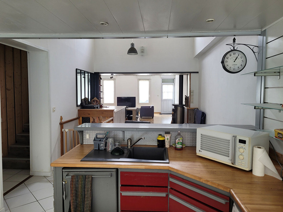 ROCHEFORT en faubourg proche des écoles et de quelques commerces - maison à étage de 128 m² habitables comprenant une pièce de vie de 43 m² équipée d'un agréable poêle à bois, en suit une cuisine/salle à manger de 30 m², une chambre, salle d'eau, un WC. A l'étage petit palier avec placard dessert 2 chambres (18 et 9 m²). Terrasse avec accès à une dépendance de 45 m² non chauffée comprenant un espace cuisine, salle d'eau, salon et une mezzanine pouvant faire office de chambre. Chauffage au gaz de ville - Cave isolée de 30 m² Rare un garage de 25 m² avec porte motorisée - buanderie de 30 m² (4.00 % d'honoraires TTC à la charge de l'acquéreur.)
