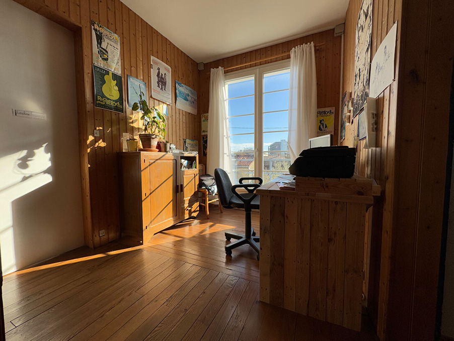 ROCHEFORT entre la gare & le centre ville - Maison de faubourg lumineuse et ensoleillée avec jardin, composée au rez-de-chaussée d'un double sas d'entrée, salon avec cheminée, salle à mange/cuisine aménagée et équipée, chambre avec mezzanine et salle de bains, WC indépendants et atelier. A l'étage le palier avec balcon faisant office de bureau distribue 2 belles chambres (env. 15 m²) et une salle d'eau. - Petite dépendance en pierre 9 m². - Garage indépendant - Chauffage gaz de ville - Maison orientée au Sud - MAISON LIBRE FIN AOUT 2025 (3.77 % d'honoraires TTC à la charge de l'acquéreur.) Ingrid FAUTREL (EI) Agent Commercial - Numéro RSAC : 409131364 - LA ROCHELLE.