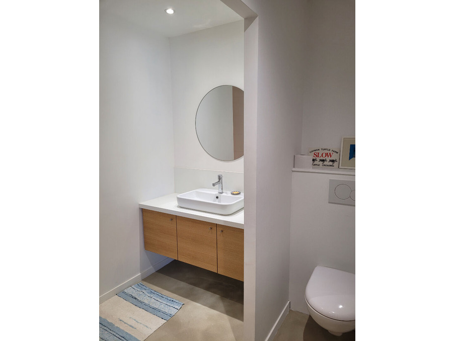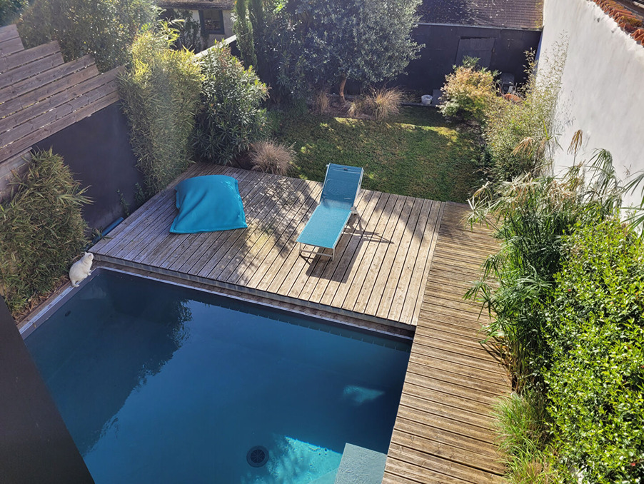 Rochefort proche centre ville, maison entièrement réhabilitée par un architecte sur 2 niveaux et de 133 m² habitables environ comprenant au rez-de-chaussée : une entrée, buanderie, WC indépendant avec lave-mains, disposant d'un poêle une agréable pièce de vie lumineuse avec un accès direct sur terrasse bois, cuisine semi ouverte entièrement équipée. A l'étage : dégagement avec placard, une suite parentale avec sa salle d'eau - dressing et terrasse privative, bureau, salle de bains et WC séparé. Au 2ème étage : un dégagement avec placards, 3 chambres avec placard, une salle d'eau avec WC. Agréable jardin paysagé clos de mur. Piscine eau sel , équipée récemment d'une pompe à chaleur. Terrasse intime. Cave de 40 m² environ. Alarme. Fibre. Dépendance de 20 m² avec arrivée électrique. Chauffage au gaz de ville. Prestations de qualités. (4.00 % d'honoraires TTC à la charge de l'acquéreur.)