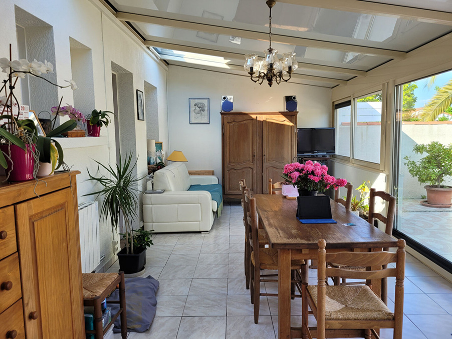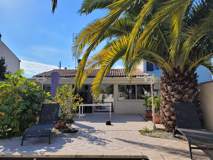 ROCHEFORT secteur calme et proche des commodités - maison de plain pied et de 105 m² habitables exposée EST - OUEST comprenant une entrée, une cuisine séparée aménagée, buanderie, pièce de vie de 30 m² avec une cheminée ouverte, une véranda de 30 m² vue sur la piscine, 2 chambres dont une avec placard, une salle d'eau et un WC séparé. Chauffage électrique - Toiture refaite en 2015 - Piscine - Garage et terrasse. (4.00 % d'honoraires TTC à la charge de l'acquéreur.)