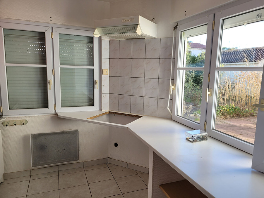 ROCHEFORT maison à étage et de 85 m² habitables environ comprenant au rez-de-chaussée une entrée directement sur pièce de vie exposée SUD, une cuisine séparée, dégagement avec placard, un WC séparé, une chambre, une salle d'eau et un bureau/dressing. A l'étage un palier dessert 2 chambres et un WC séparé. Chauffage électrique - Garage de 16 m² - Atelier dépendance de 30 m². Parcelle de 349 m² Ce bien est une VENTE A TERME avec une soulte souhaitable de 10 000€- et un crédit vendeur sur 20 ans avec des mensualités d'environ 850€-/mois. (5.00 % d'honoraires TTC à la charge de l'acquéreur.)