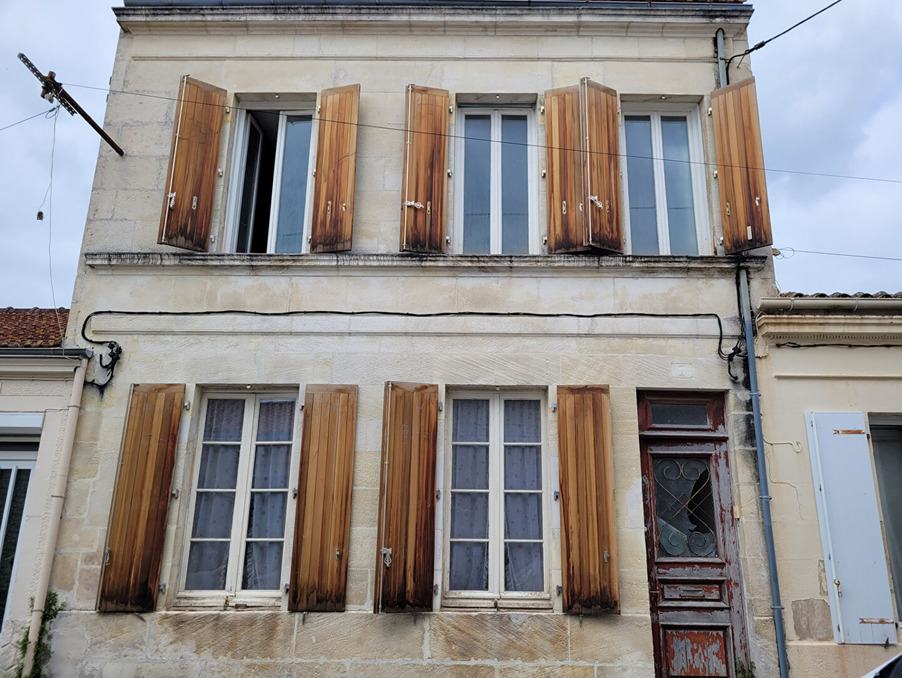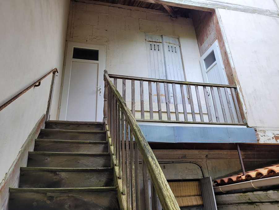 ROCHEFORT quartier chante alouette à 5 minute à pied du centre ville - maison en pierre à étage et de 112 m² habitables environ à rénover comprenant une entrée, un salon sur rue exposé sud, salle à manger, une cuisine et une salle de bains avec WC.A l'étage avec accès par l'extérieur 3 chambres et un cabinet de toilettes avec WC.