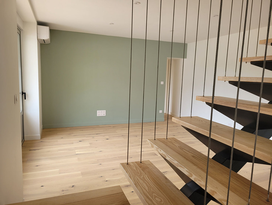 Une vaste pièce de vie de 40 m² baignée de lumière, une cuisine aménagée et équipée, exposées plein sud avec une vue imprenable sur le jardin et la piscine.