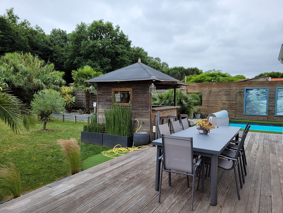 TONNAY-CHARENTE CHAMPSERVÉ - Un ensemble immobilier composé d'une 1ère maison de 115 m² comprenant une entrée, un pièce de vie avec cuisine ouverte aménagée et équipée, véranda, buanderie, dégagement, 3 chambres dont une avec salle d'eau, bureau, salle d'eau et WC indépendant. 2ème maison construite en 2018 et de 50 m² meublée comprenant une entrée avec placard, pièce de vie avec espace cuisine aménagée et équipée, une chambre et une salle d'eau avec WC. Garage de 28 m² avec porte électrique - Piscine chauffée eau chlore dotée d'un volet. Terrasse bois exotique de 60 m² vue sur 1157 m² de terrain arborés et entretenu. Terrain de pétanque - Cabanon - Volets électrique - Caméra - Store banne - Interphone. (4.00 % d'honoraires TTC à la charge de l'acquéreur.)